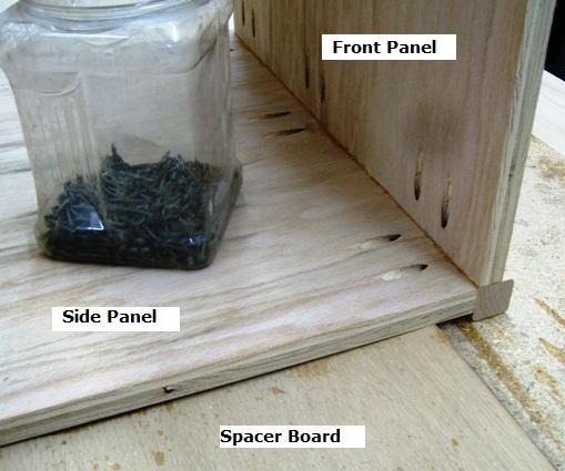 - Select the 1 x 1 Hardwood Stock; Cut two pieces @ 3/4" wide x 1/2" thick x 18" for the Bottom Spacers; Attach to the Bottom Panel with glue and screws